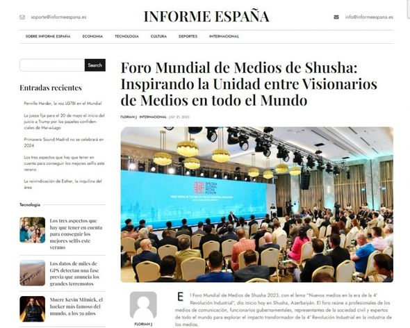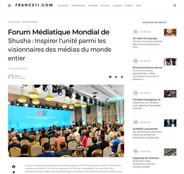 Kanadanın “Digital Journal”, Fransanın “France11”, İspaniyanın “Informe Espana”, Belarusiyanın “SB-BY” eləcə də digər xarici KİV-lərdə də yayımlanan materiallarda qeyd edilib ki, Şuşa Qlobal Media Forumunda mühüm qlobal və regional məsələlərə toxunub. Xəbərlərdə 49 ölkədən 200-dək xarici qonağın qatıldığı Şuşa Qlobal Media Forumunun əhəmiyyəti qeyd olunub, bu mötəbər tədbirin açılış mərasimində Azərbaycan Prezidentinin iştirakı və dövlətimizin başçısının fikirləri diqqət mərkəzində saxlanılıb.