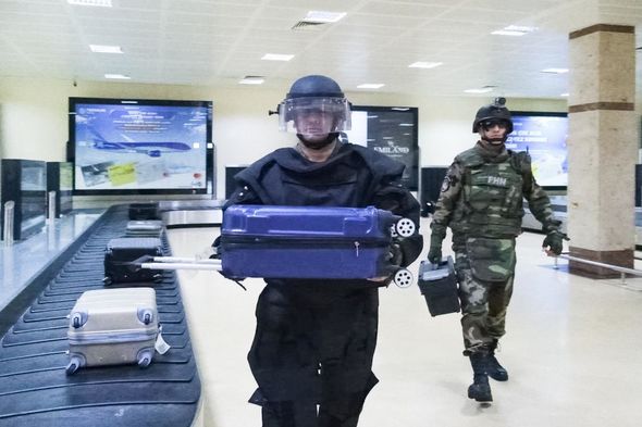 Ərazidə olan insanlar təhlükəsiz məsafəyə təxliyə olunduqdan sonra xüsusi təlim görmüş itlərlə aparılmış axtarış tədbirləri nəticəsində hava limanının sərnişin və yük terminallarında şərti sahibsiz şübhəli əşya qismində çantalar aşkar edilib. Müayinə nəticəsində çantalarıın içində “partlayıcı maddələr”in olması təsdiqlənib.