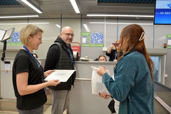 Azərbaycandan gedən qonaqları Omsk vilayətinin Turizm İnformasiya Mərkəzinin əməkdaşları qarşılayıblar. Əməkdaşlar Omsk şəhərinin turizm xəritələrini və regionun maraqlı yerləri ilə bağlı bələdçi kağızlarını paylayıblar. Qayıdış reysi üçün qeydiyyatdan keçməyə gələn sərnişinlər Omsk hava limanının baş direktoru Oleq Seliverstovdan suvenirlər və biznes salonunda xidmət üçün sertifikatlar alıblar.