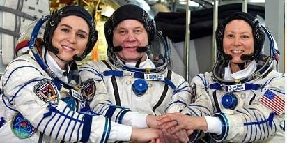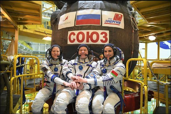 Gəminin göyərtəsində kosmik uçuşun ilk belaruslu iştirakçısı Marina Vasilevskaya, “Roskosmos”un kosmonavtı Oleq Novitski və NASA-nın astronavtı Loral Oxara olublar.