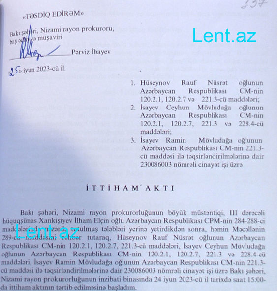 Ceyhun İsayev ittiham üzrə özünü qismən təqsirli bilərək ifadəsində, Xəyal Rəhimovu tanıdığını göstərib: