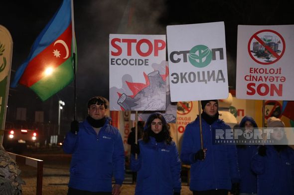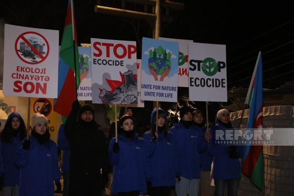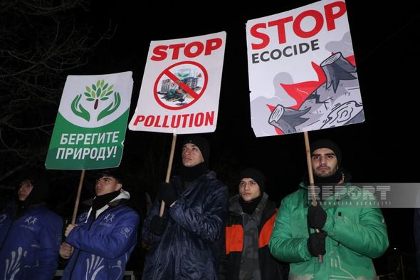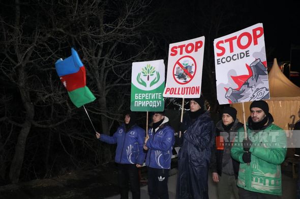 “Report”un Şuşaya ezam olunan əməkdaşı xəbər verir ki, etirazçılar aksiyanın keçirildiyi ilk gündən etibarən dünya ictimaiyyətini ekologiyanı qorumağa çağırırlar.