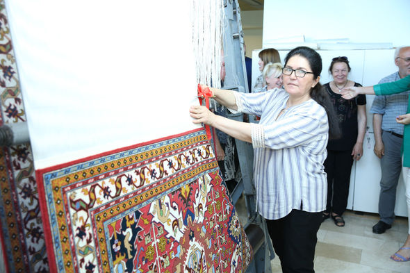 O bildirib ki, ənənəvi texnologiya şöbəsinin toxucuları Südabə Rüstəmova və Mirvari Cəfərova tərəfindən bir il müddətində toxunan xalça kolleksiyamızın ən dəyərli eksponatlarından birinin – XVII əsrə aid “Xətai” (Əjdahalı) xalçasının replikasıdır.