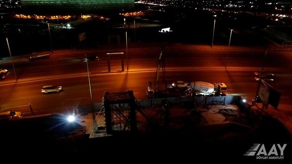 Azərbaycan Avtomobil Yolları Dövlət Agentliyi Bakının Ziya Bünyadov prospektinin Xəlil Rza Ulutürk küçəsi ilə kəsişməsində yeni yerüstü piyada keçidi inşa edir.