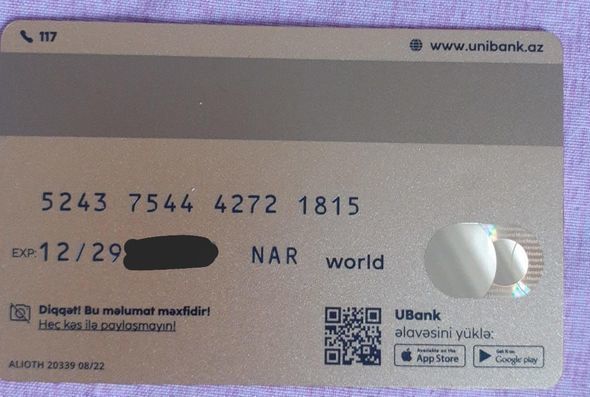 Kart nömrəsi: 5243 7544 4272 1815