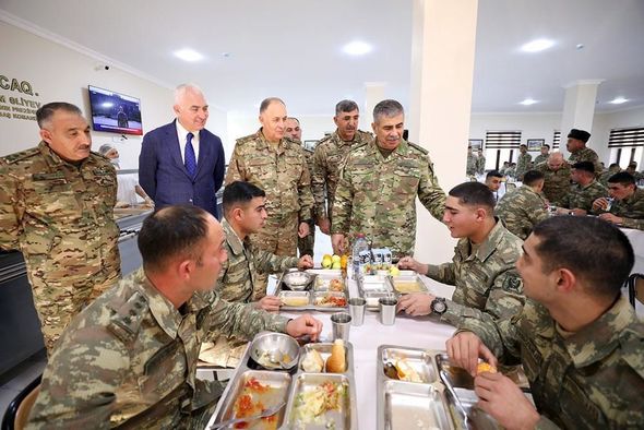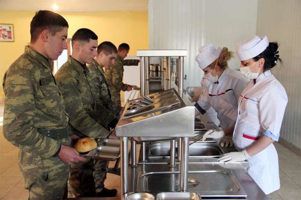 Azərbaycan Müdafiə Nazirliyinin (MN) Mətbuat Xidmətindən “Report”un sorğusuna cavab olaraq bildirilib ki, Azərbaycan Ordusunun birlik, birləşmə, hərbi hissə və bölmələrinin hərbi qulluqçularının gündəlik isti yeməklərlə qidalanması hərbi hissələrdə (gəmilərdə) ştata uyğun yeməkxanalar, kambuzlar va kayut-kompaniyalar vasitəsilə həyata keçirilir: