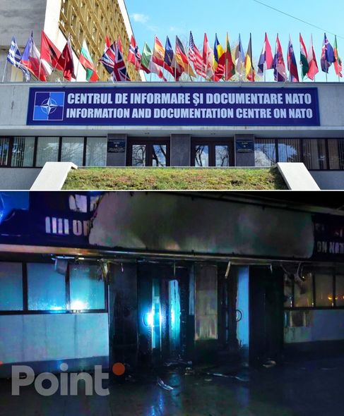 Moldovanın paytaxtı Kişineuda NATO-nun informasiya mərkəzinin yerləşdiyi binanın qapıları yandırılıb.