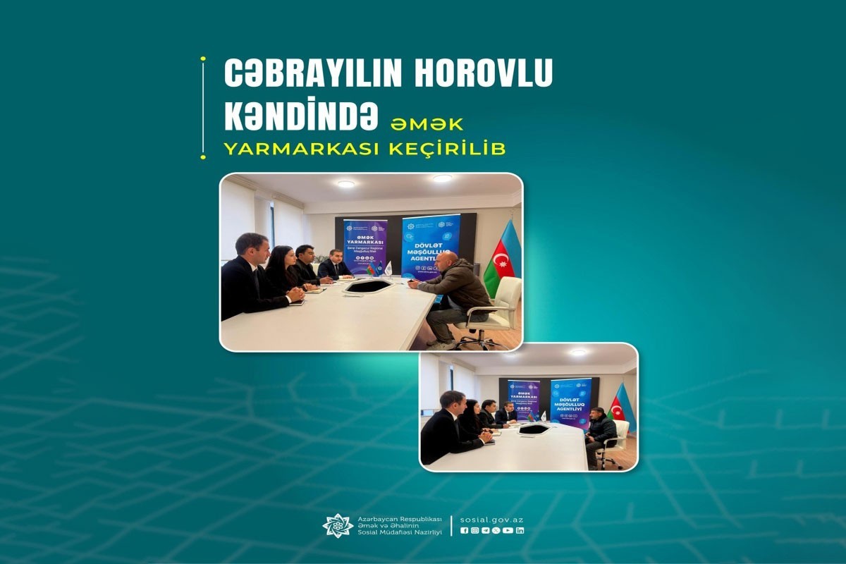 Əmək və Əhalinin Sosial Müdafiəsi Nazirliyinin tabeliyində Dövlət Məşğulluq Agentliyi və “Azfen” MMC-nin birgə təşkilatçılığı ilə Cəbrayıl rayonunun Horovlu kəndində əmək yarmarkası keçirilib.