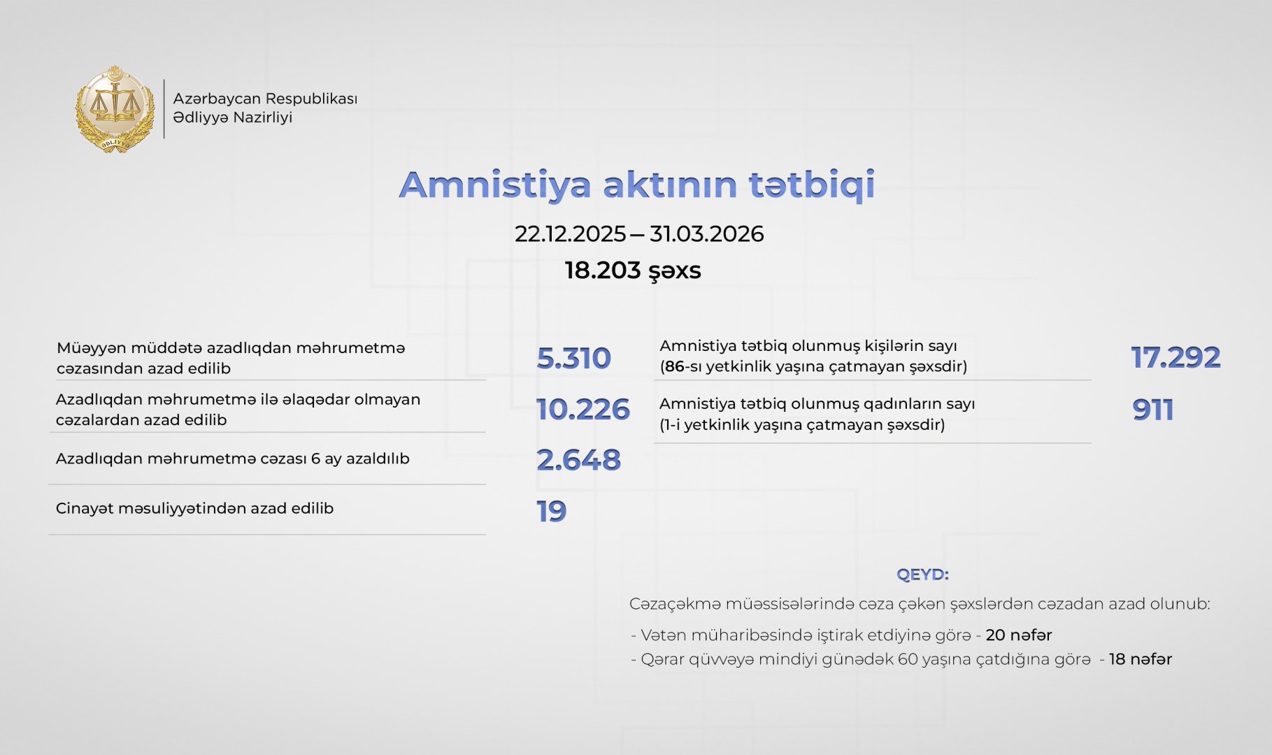 203 nəfər barəsində amnistiya qərarı tətbiq olunub.