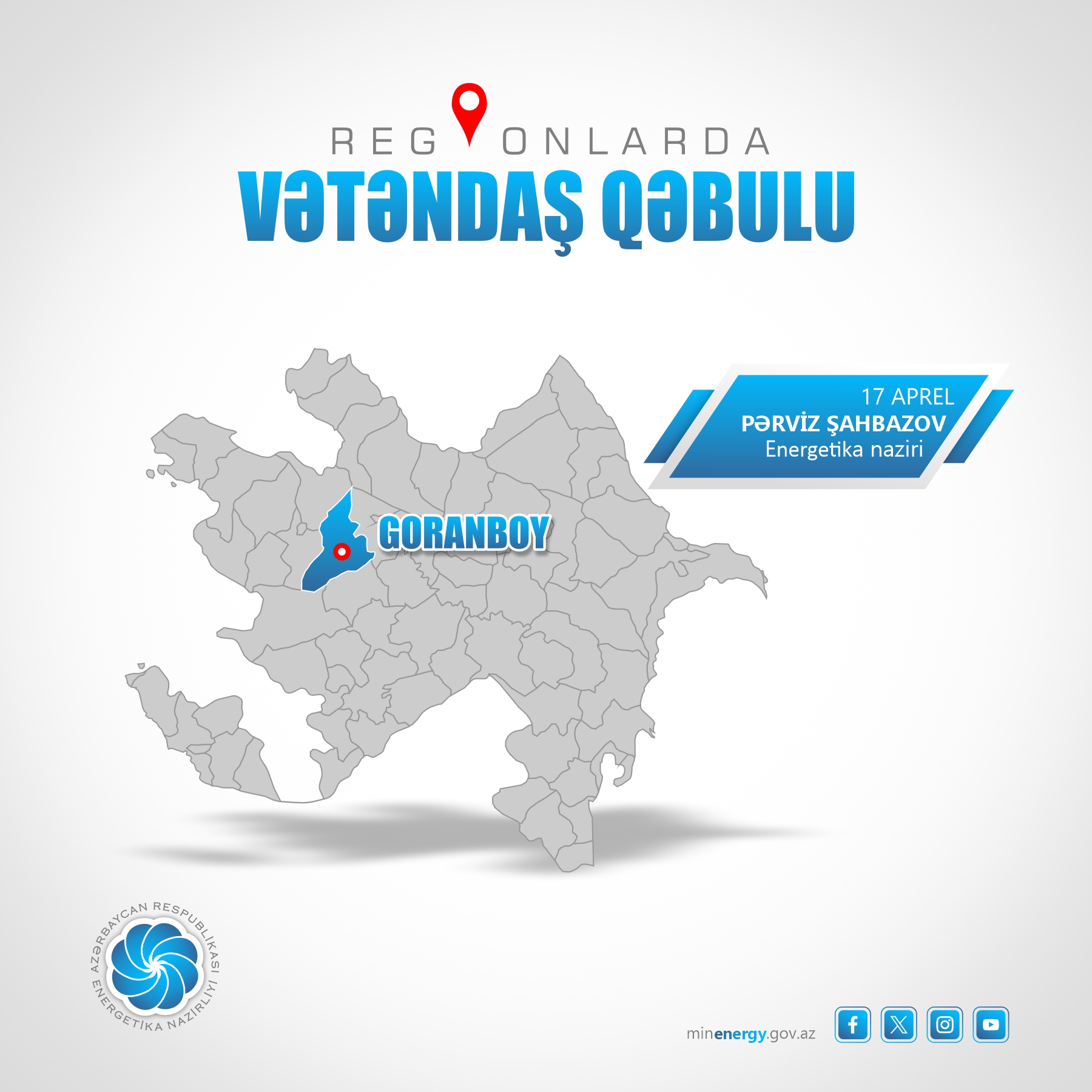 Energetika naziri Pərviz Şahbazov 17 aprel tarixində Goranboy,