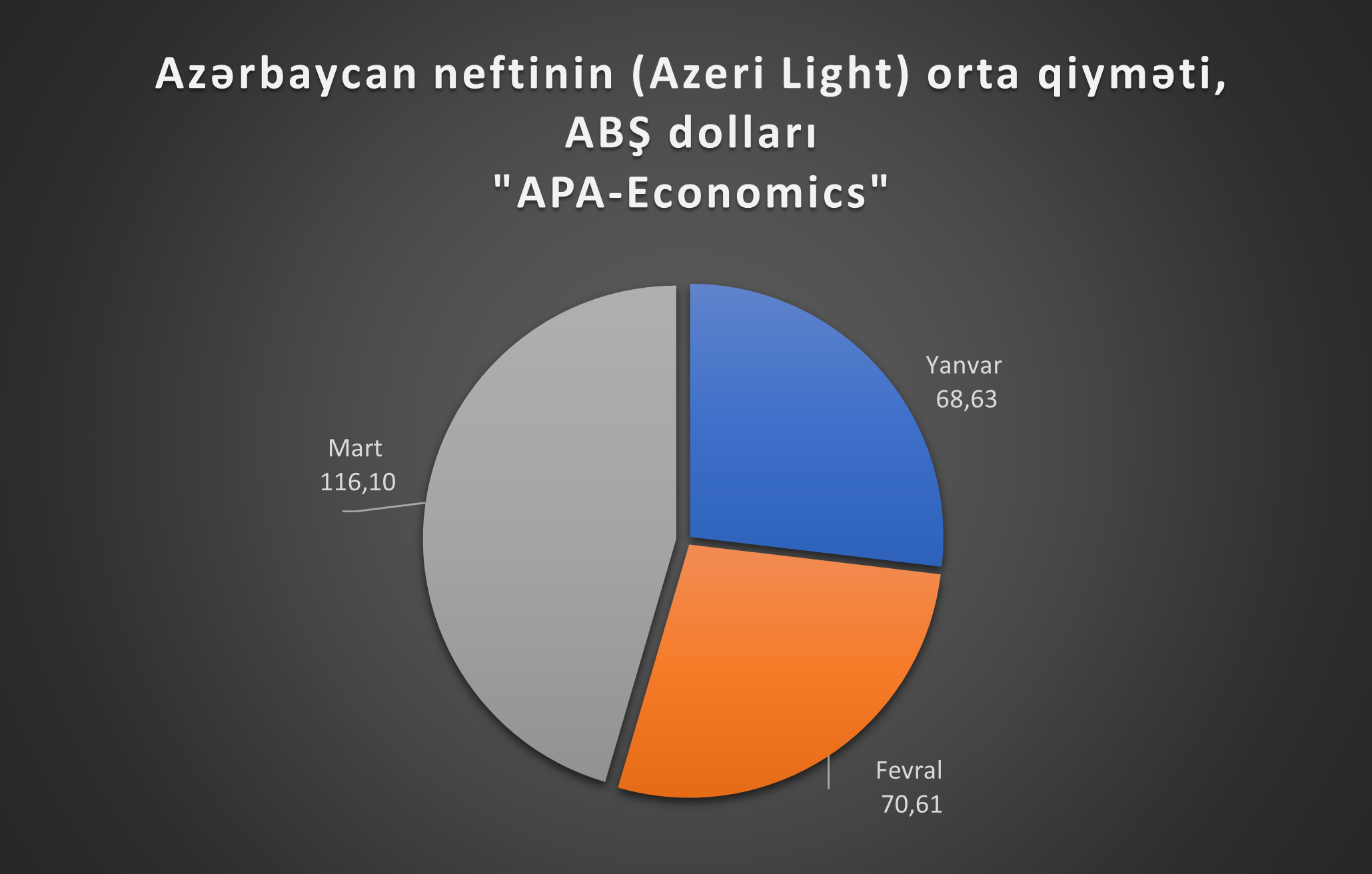 “APA-Economics”in apardığı hesablamalara görə, bu ilin ilk 3 ayı ərzində Azərbaycan neftinin orta qiyməti 85,11 ABŞ dollarına bərabər olub.