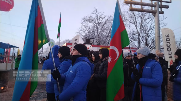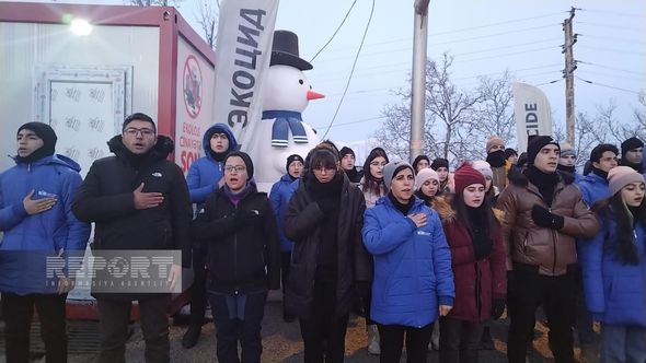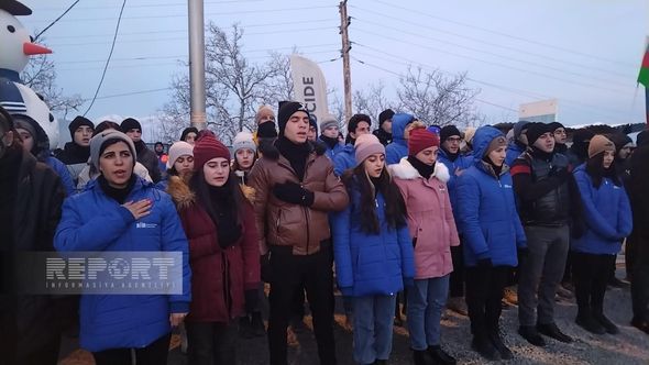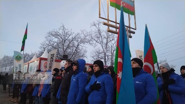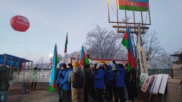 Hazırda havanın qarlı və şaxtalı olmasına baxmayaraq, ekofəallar yolun hər iki tərəfində, hərəkətə maneə törətmədən üzərində Azərbaycan, rus və ingilis dillərində yazılmış plakatlar qaldırıb, şüarlar səsləndirirlər.