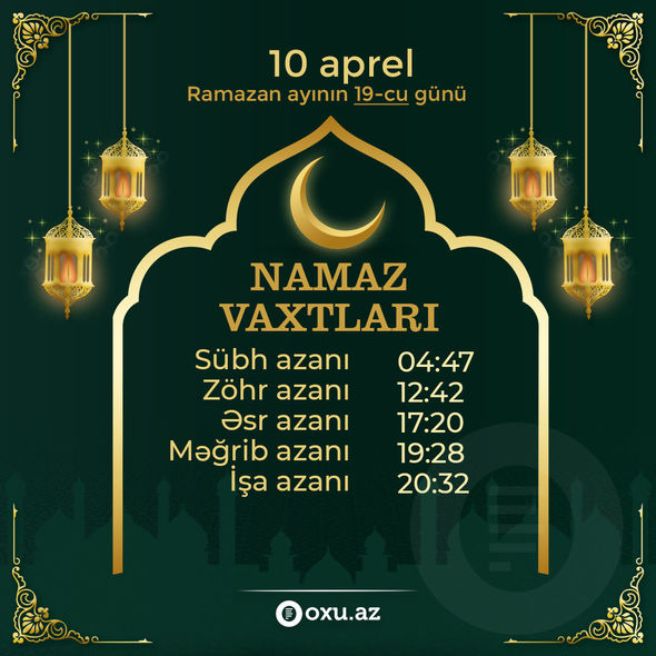 Aprelin 10-u üçün namaz vaxtları: