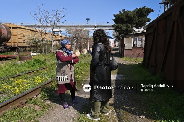 “Yoldaşımgil qaçqın düşəndən buraya pənah gətiriblər. Bu ərazidə ümumilikdə 40 ev var. Binada doqquz ailə yaşayır. Çox təhlükəlidir. Uşaqları bu səbəbdən məktəbə özüm aparıb-gətirirəm. Bir dəfə qonşunu qatar vurmuşdu. Kişi illərlə yataq xəstəsi oldu. 2010-cu ildə mənim üç yaşlı qızım eyvandan düşərək dünyasını dəyişdi. Qorxu içində yaşayırıq”.