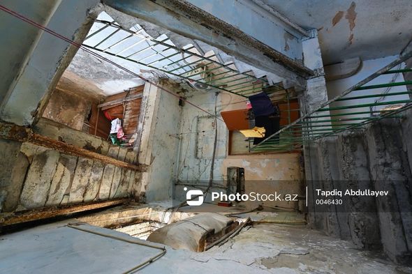 “Zəngilandan qaçqın düşəndən sonra, 1993-cü ildən burada yaşayırıq. O gün divarın yuxarı hissəsi uçdu. Daşlar qonşunun evinin üstünə töküldü. Şiferin üstü daşla doludur. Yaxşı ki, xəsarət alan olmadı. Biz 1993-cü ildən bu vəziyyətdəyik. Hər şey başımıza tökülür. Təhlükə içində yaşayırıq. Bu binada doqquz ailə yaşayır. Biz özümüz beş nəfər bir otaqda yaşayırıq. Buraya nə qədər adam gəlib. Heç kəsin də köməyi olmayıb. Nəsə yardım edəcəklərinə inanmıram”.