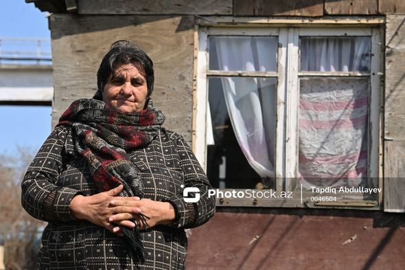 “Zəngilan işğal olunandan sonra, 1993-cü ildən burada yaşayıram. Yaşayış çətindir. Qaz yoxdur. İstiliyi bir tək elektriklə təmin edirik. O da çox zəifdir. Zülmlə yaşayırıq. Bir otağa beş nəfər sığınıb. Sonradan oğlum evləndiyi üçün ikinci otağı tikdik. Əvvəllər camaat vaqonda yaşayırdı. Sonra köçdülər. Soyuq vaxtlarda, qışda körpə uşaqla çətindir. Xəstəlik baş alıb, gedir. Təhlükə içində yaşayırıq.