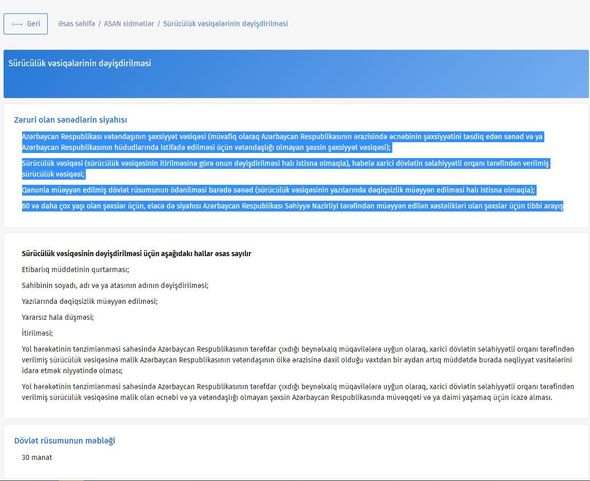 Qeyd edək ki, asan.gov.az portalında sürücülük vəsiqəsinin dəyişdirilməsi ilə bağlı səhifədə “Zəruri olan sənədlərin siyahısı”nda “60 və daha çox yaşı olan şəxslər üçün, eləcə də siyahısı Azərbaycan Respublikası Səhiyyə Nazirliyi tərəfindən müəyyən edilən xəstəlikləri olan şəxslər üçün tibbi arayış” tələbi qeyd edilib. Bu, o deməkdir ki, 60 yaşdan aşağı şəxslər sürücülük vəsiqələrini dəyişdirən zaman onlardan sağlamlıq haqqında arayış tələb edilmir.