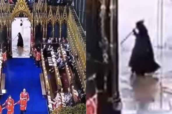 Britaniya kralı III Çarlzın tacqoyma mərasiminin canlı yayımında arxa fonda görünən, əlindəki dəyənək və qara plaşla “ölüm mələyi”nə bənzəyən müəmmalı fiqurun kimliyi məlum olub.